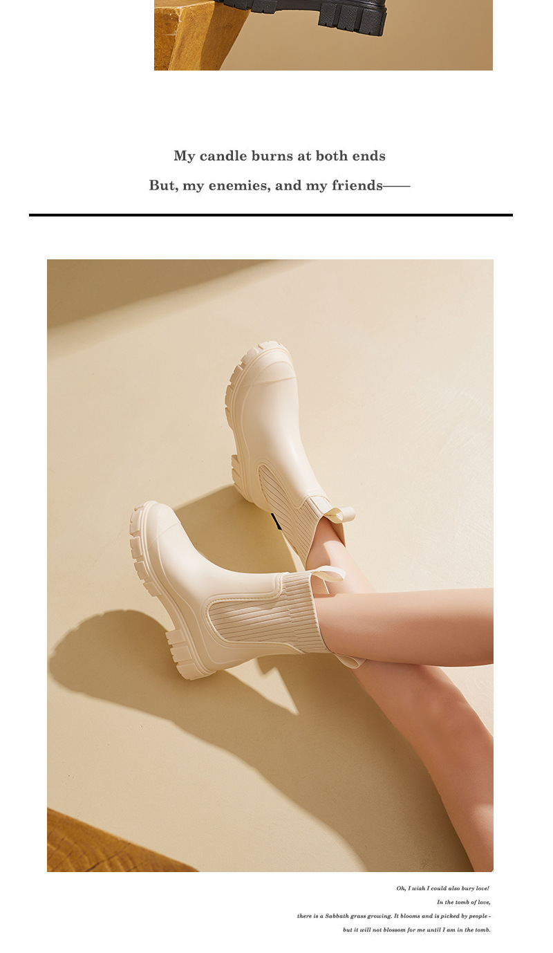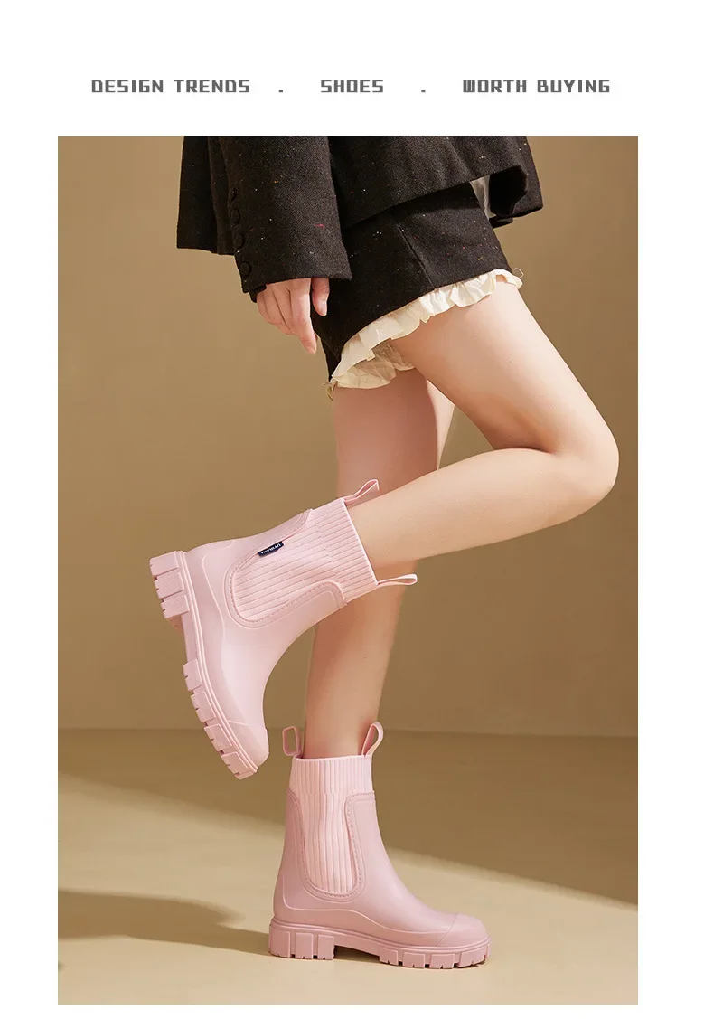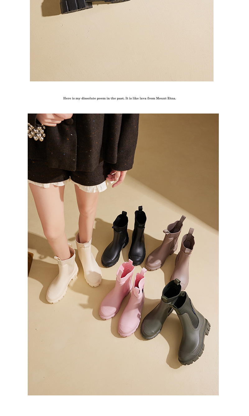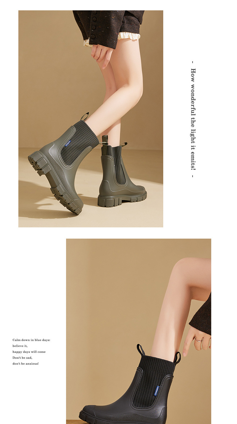 Elastic Waist Women's Mid-Calf Rain Boots, Durable Heeled Waterproof Non-Slip Outdoor Wearable Mid-Calf Boots for Rainy Weather